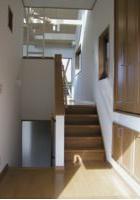 そこで玄関を中二階まで上げる事にしました。来客には中二階まで来てもらい、応対は中二階まで下りれば事が足ります。また外出時も中二階で靴を履いたり脱いだりする為、移動の連続性が途切れ、気持が楽になります。