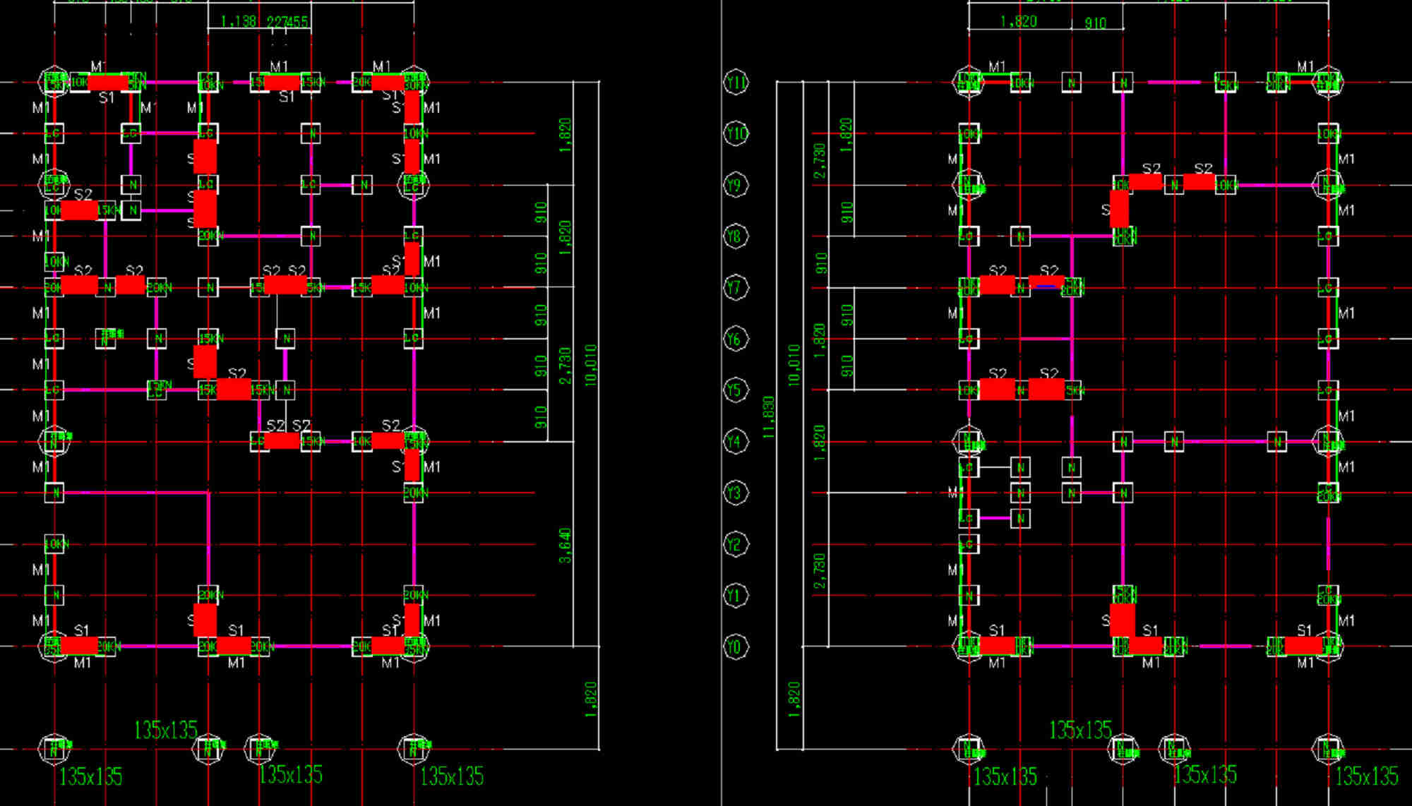 構造計算を行うと一階で12か所二階で8か所必要と云う結果が出てしまいます。詳細法では、柱の一本一本にどれだけの力が加わるのか、全て数値で現れますので、無駄なく効率的に配置出来ているはずなのです。