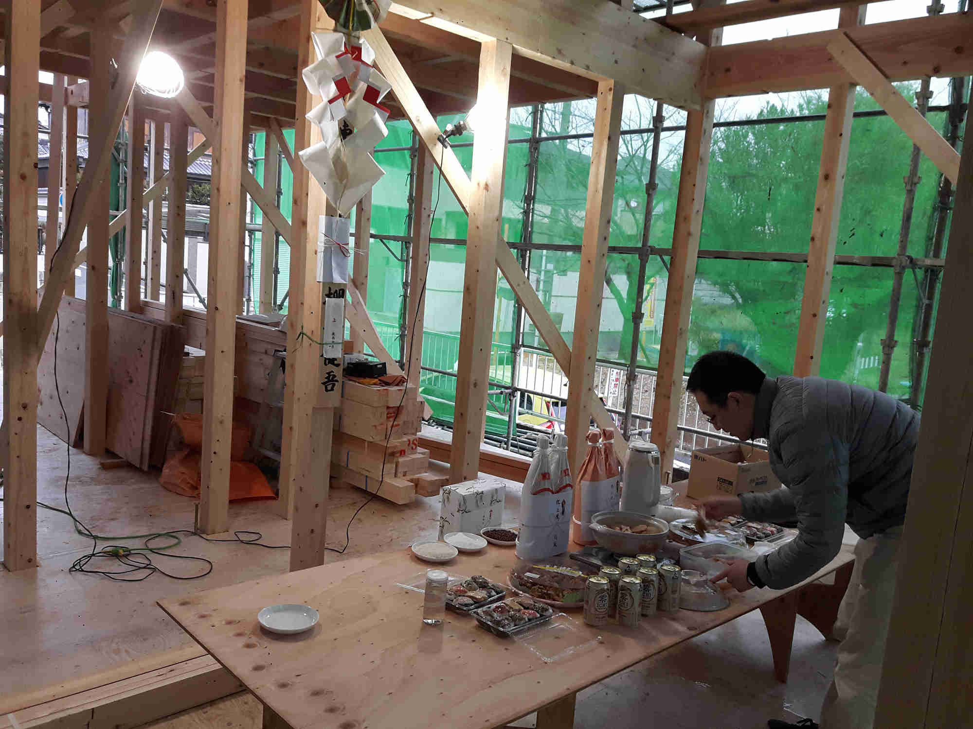 木造住宅の工事における、もっとも重要なイベントです。今まで紙の上のイメージでしかなかった間取りが、カタチとなって目の前に現れる瞬間です。
