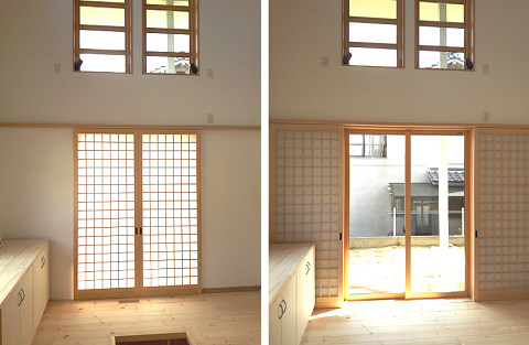 障子を開けると、リビングの気配を感じる事が出来ます。