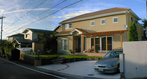 で、家なんですけど、1階の和室以外は全てテラコッタタイルです。リビングの前と横も約20畳分のテラスもテラコッタタイルなんです。このテラコったタイルなんですが、わたしの家の基本ってのが、明るい家。スペインのような家やったんでバッチリなんです。ただ、イタリアやスペインから輸入するとタイルは1枚3000円位するそうなんです。これを福味先生が探して下さったブラジル産にすると・・・・・夢実現出来ますよ(笑)