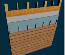 外壁の仕上げ材を、角波鋼板の様な、裏側に総突のある、通気層が出来る材料を仕上げ材として用いれば、そこを空気が対流し、通気層と同じ役目を果たしてくれます。