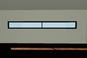逆に同じ面積でも横長にしてしまうと、腰壁とタレ壁に影ができてしまい、暗い印象をうけます。 |