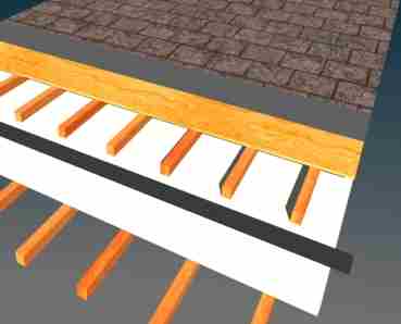 木造住宅で屋根断熱をする場合、右図の様な、タルキ(垂木)の間に断熱材を入れた工法が一般的です。