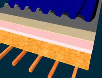 金属屋根の欠点は、雨音が耳障りな事です。しかし、耐水プラスターボードをルーフィングの下に敷けば、家の中に音は伝わりません。