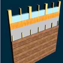 仕上げ材に直射日光が当たりますので、熱せられますが、通気層の中を流れる空気が壁を冷やしますので、熱を屋内に伝え難しています。