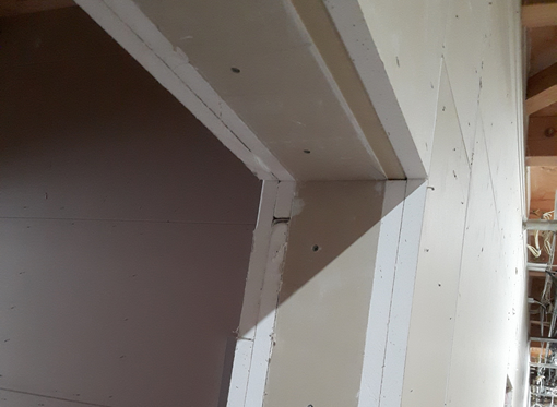 木を石膏ボードで隙間なく覆う事により炎から木を守り一時間耐火の認定を取得する事ができます。